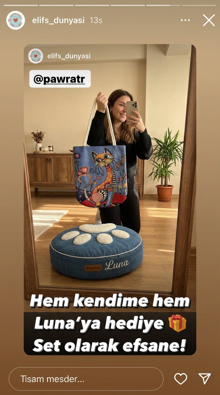 Sadece yatak alacaktım ama çantayı görünce dayanamadım. İyi ki almışım, çantanın kalitesi muazzam. Yatak zaten efsane, Luna ismini harika işlemişler. Kargolama çok özenliydi, kutuyu açarken kendimi özel hissettim.