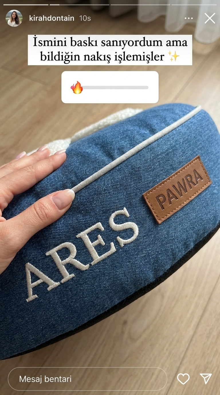 Fransız Bulldog sahibiyseniz dayanıklılık her şeydir. Önceki 3 yatağı parçaladı ama bu denim kumaş gerçekten zırh gibi. Hem çok şık hem de beton gibi sağlam. Üzerindeki ismi de çok özenli işlemişler. Bir kere alıp ömürlük kullanmak isteyenlere tavsiyemdir. 💪